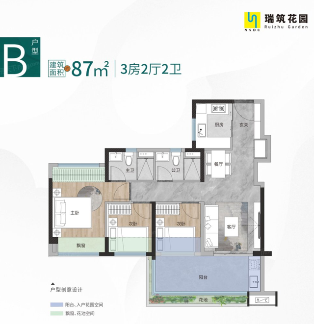 而瑞筑花园C-84平方米和B-87平方米户型,则在78平方米和94平方米之间,提供了更具弹性的选择。它们同样遵循三房两卫的经典配置,在空间利用率和舒适度之间找到了平衡点。这些户型的设计,均透露出一种以人为本的理念,力求在有限的空间内,最大化地满足现代家庭对于居住功能、舒适度和私密性的需求。