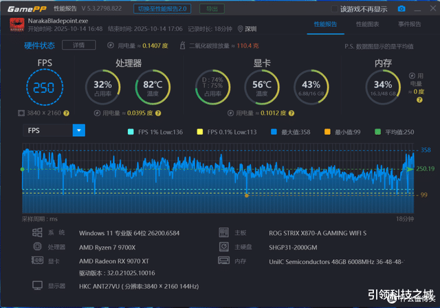 同样对内存敏感的永劫无间,1080P极高画质平均帧也有250FPS,Low帧136FPS。