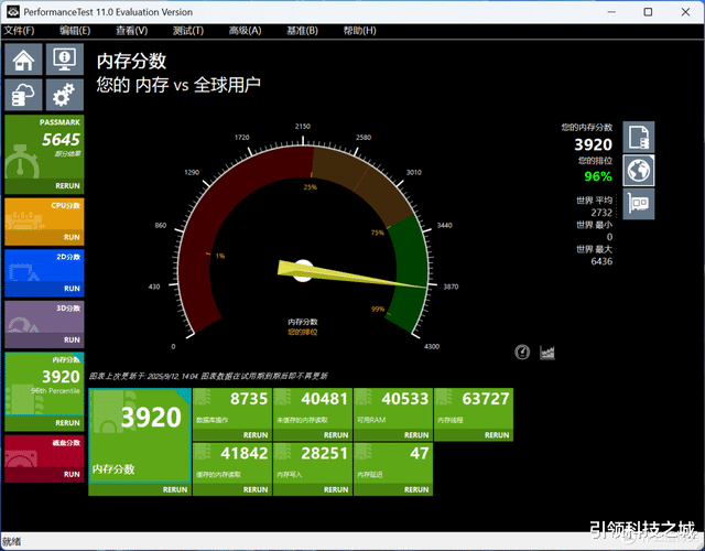 PerformanceTest则拿到了3920分,排名领先96%用户,官方超频的表现也很给力。