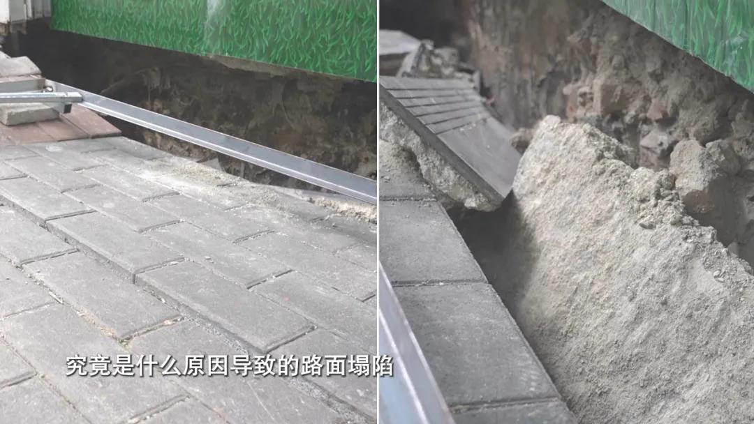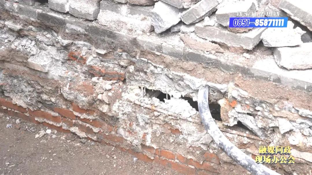 南明区市政工程服务中心 桥梁隧道科科长 张朋:物业长期没有针对这个问题清理,污水管道已经满足不了现状的排水需求,导致渗漏,然后地基松软,最后垮塌。