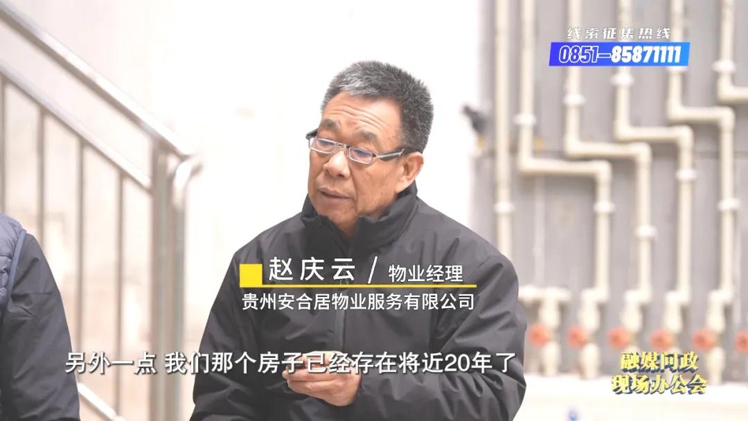 贵州安合居物业服务有限公司 物业经理 赵庆云:物业是没有那个能力的,我先强调一点,要找就找房开。至于迁改的,我们全力配合,抓紧时间把排污管道弄出来,把路面恢复,我们就提这个意见。