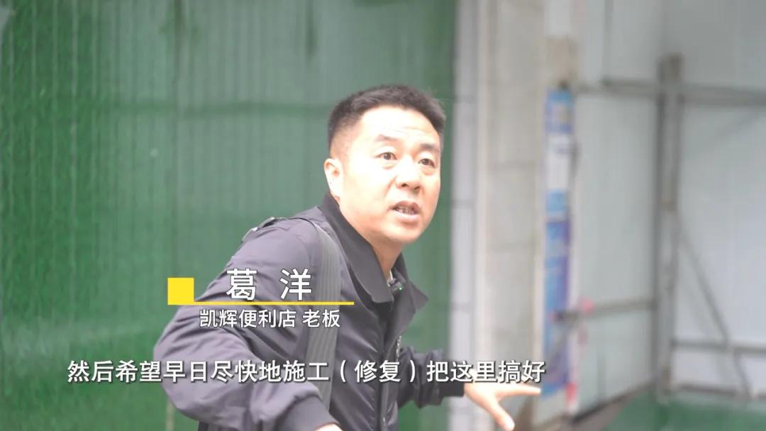 凯辉便利店老板 葛洋:不管是市政、住建局、物业、社区,还有包括施工方都在相互推脱这个责任,没有定性下来。现在我希望要继续追踪报道这件事情,把(责任)落实下来,对我的经济损失才有赔偿,也希望他们早日恢复路面。