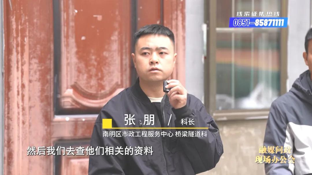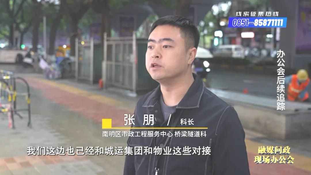 南明区市政工程服务中心 桥梁隧道科科长 张朋:刚刚提的这个问题,我们下来之后和住建的同志去查相关的资料,我们也把物业的喊起,包括办事处,共同来调查一下这个事情,把责、权、利分清楚。我们争取在本周内先去收集资料,及时给你们反馈。
