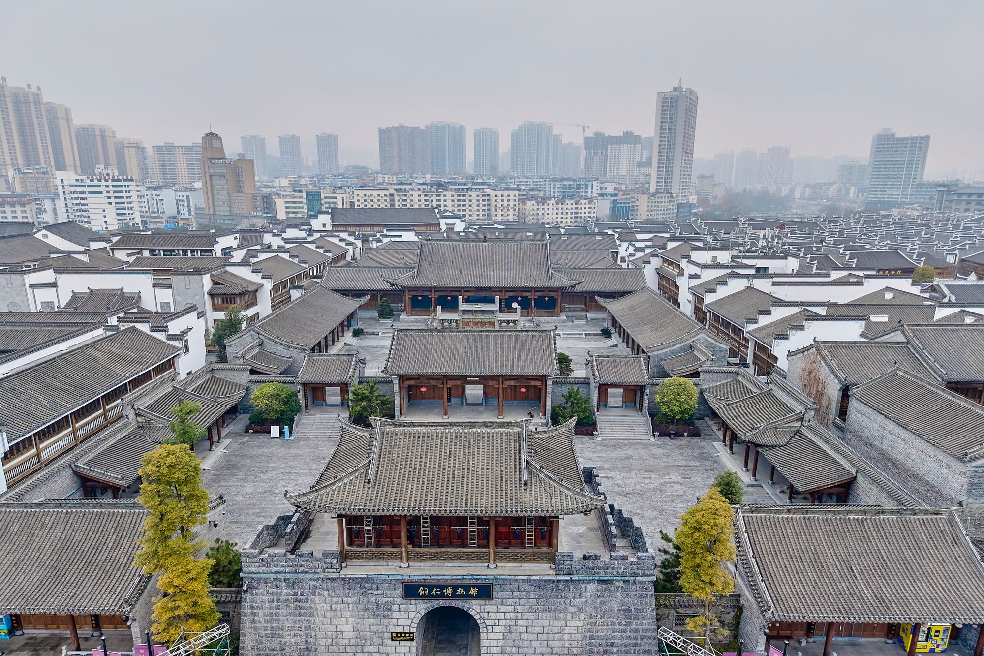建筑高低错落,古朴的韵味镜头感极佳。室外同样是参观体验的一部分,青砖墙壁上“黔中砥柱”“物阜民”等题字记录着铜仁作为黔东门户的历史地位。