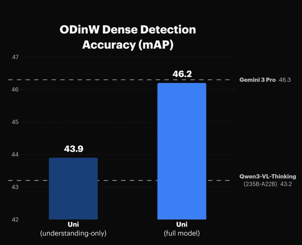 物体检测基准测试Uni-1几乎追平谷歌Gemini 3 Pro(图源:Lumalabs)