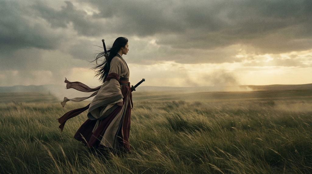 智东西也亲身体验了一下。我让它“生成一张宿命感照片,一个长发飘飘的女子身穿战国袍,配了把剑”,输入提示词后,他会先花几秒钟分析我的需求,然后再进行创作。创作花了差不多5分钟终于完成了,生成的画面很有电影感,头发、衣摆随风自然飘动,服饰很有质感。整体语义理解精准、细节丰富,但是仔细看可以发现剑出现了两把,貌似有点小问题。