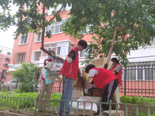 图: “青春不打烊”志愿服务队全体成员清理小区堆积杂物(徐瑞溪、由英杰 供图)