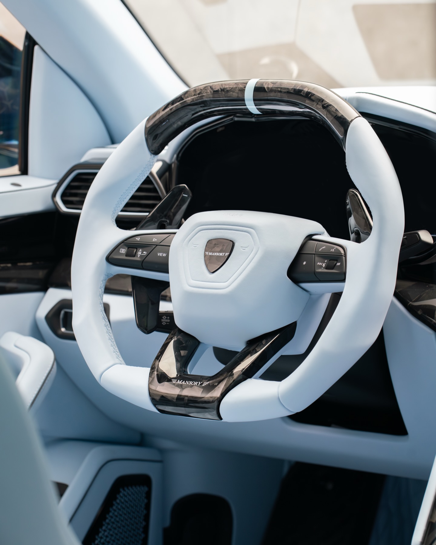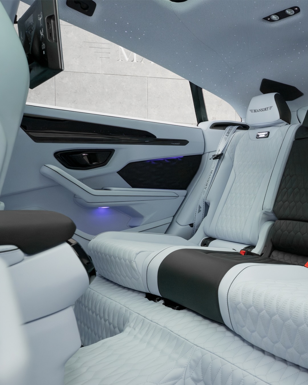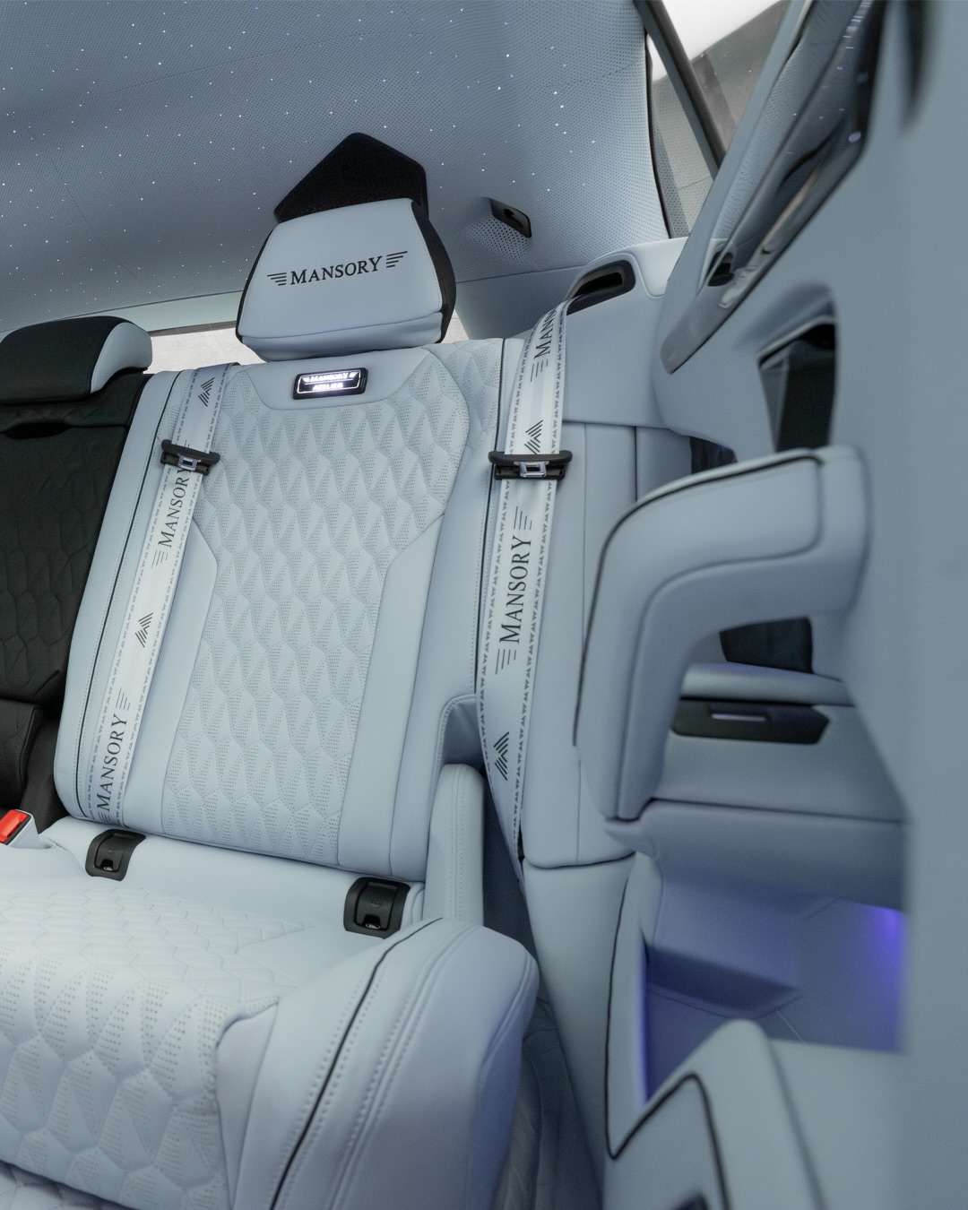 Experience the joy of 900 horsepower and 1.100 Nm of torque with the exclusive bespoke 1 of 1 Mansory Venatus EVO S.A sophisticated Charles blue to black fade and a matching colored fully leather interior.