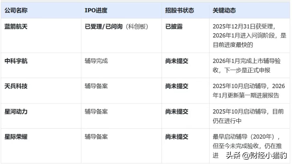 除了SpaceX,国内方面蓝箭航天、中科宇航等领军企业估值已突破百亿大关,并正式进入科创板上市辅导期。