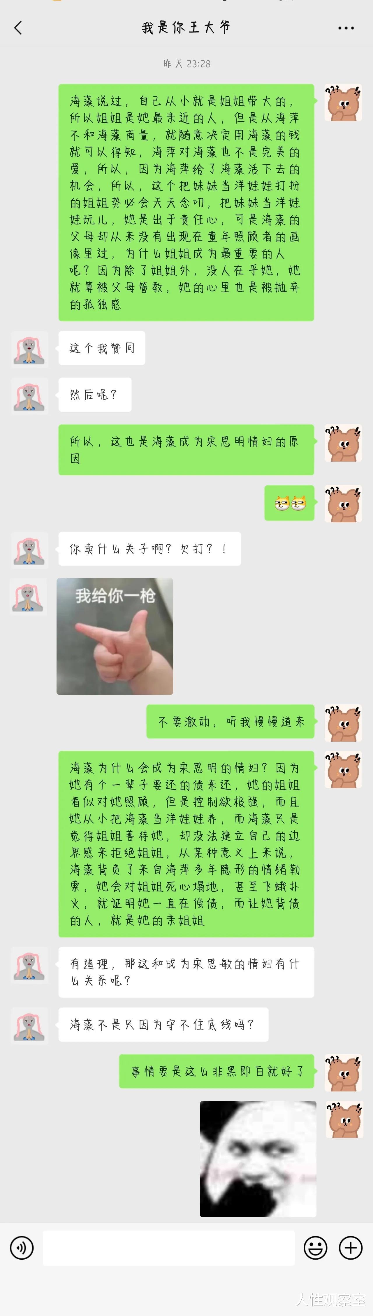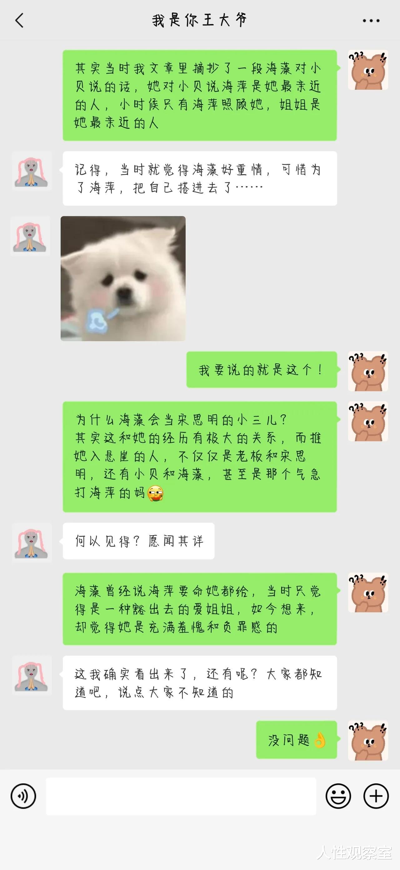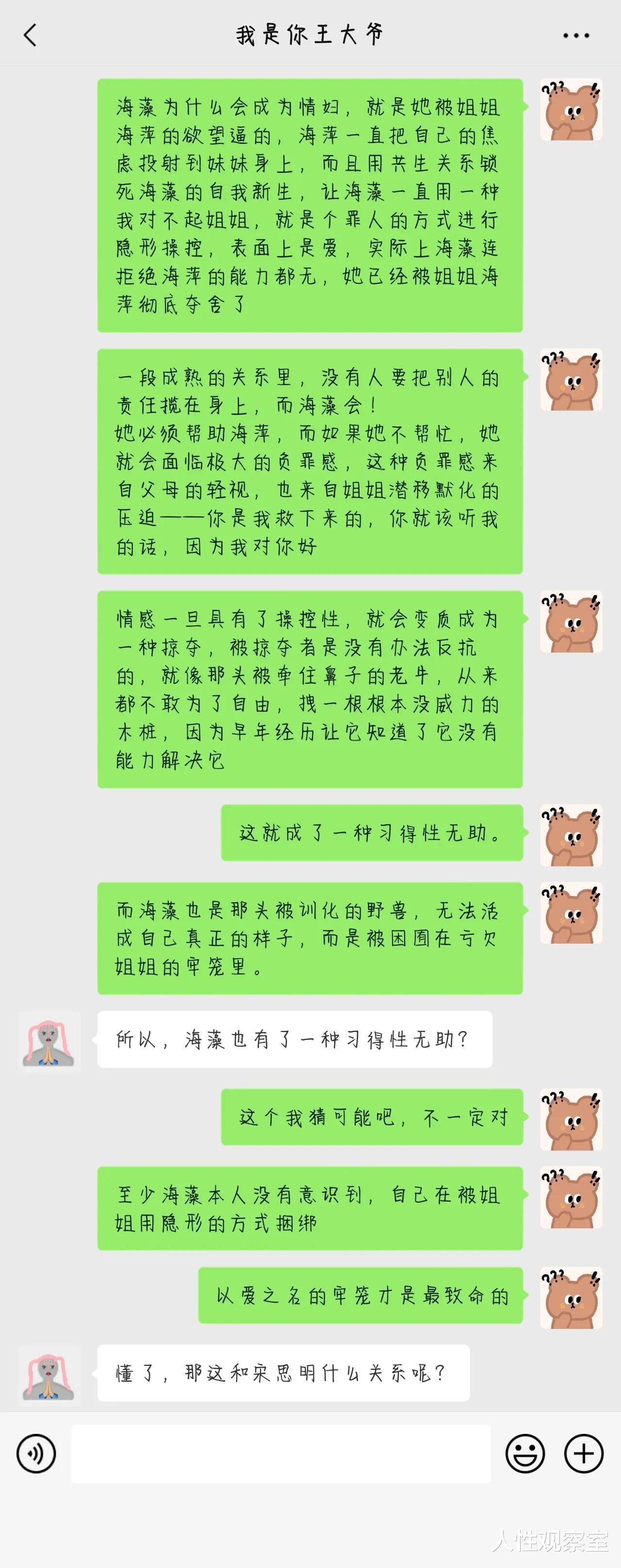 你能说海藻做宋思明的情妇,不是一种代偿心理吗?