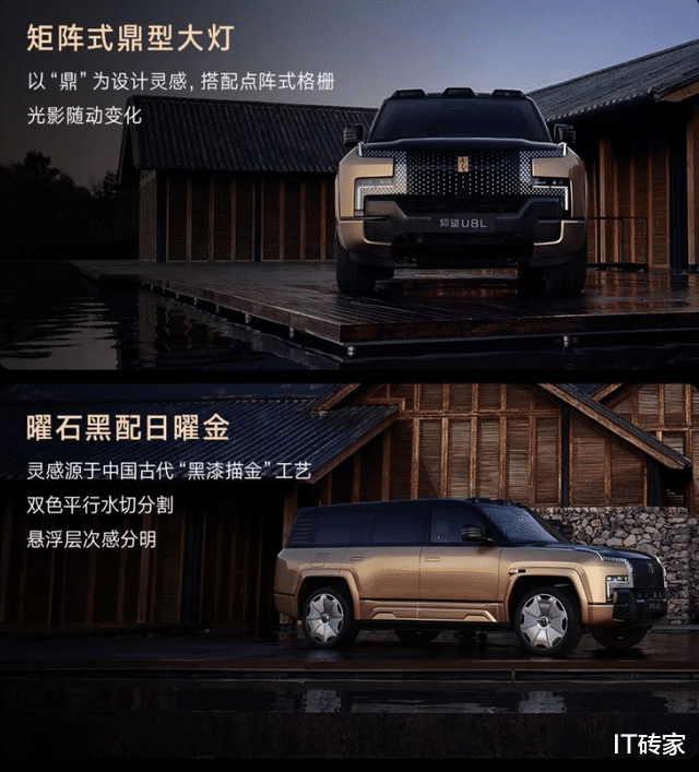新车以曜石黑配曜金双拼配色和24K黄金车标出现在2025上海车展上,再加上5.4米车长,吸引无数目光关注。新车在9月12日正式上市,提供黑金双拼配色,售价128万元。外观沿用仰望U8设计风格,在U8基础上进行了加长,同时加入更多选装配置。车展上该车前后LOGO均采用用24K黄金材质打造,采用甲骨文篆刻,具体含金量并未公布。