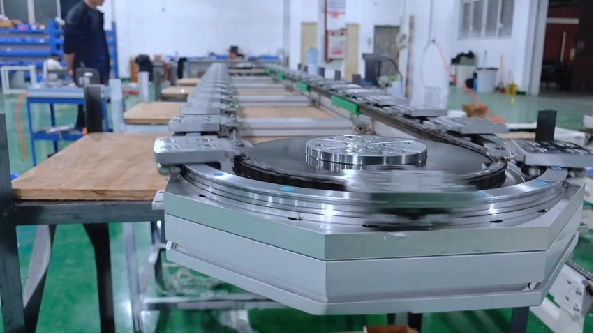 A:环形导轨由圆弧导轨+直轨组合而成,特别适用于线体载具体积大、现场有重机构或大型设备的场景,而且线体可任意增长,能根据生产规模变化灵活调整。