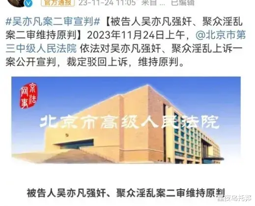 法院驳回了吴亦凡方的上诉,仍然维持原判。