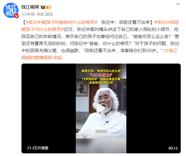 近日,74岁的张纪中在分享家庭生活时,提及孩子们曾因他的年龄发出天真提问,不仅有“爸爸你怎么这么老”,更有“爸爸,你什么时候死”这般童言无忌。对此,张纪中以充满父爱与幽默的方式回应道:“目前还看不出来,准备陪你们到30岁。”