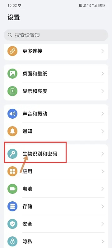 1、首先打开手机页面,点击手机上的:设置。2、进入到设置页面后,点击:生物识别和密码。3、进入到生物识别和密码页面后,点