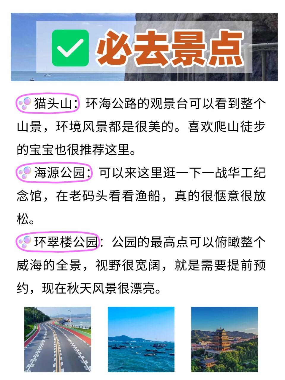 1️⃣威海的景点比较分散,建议租车或者自驾游会更加方便点。
