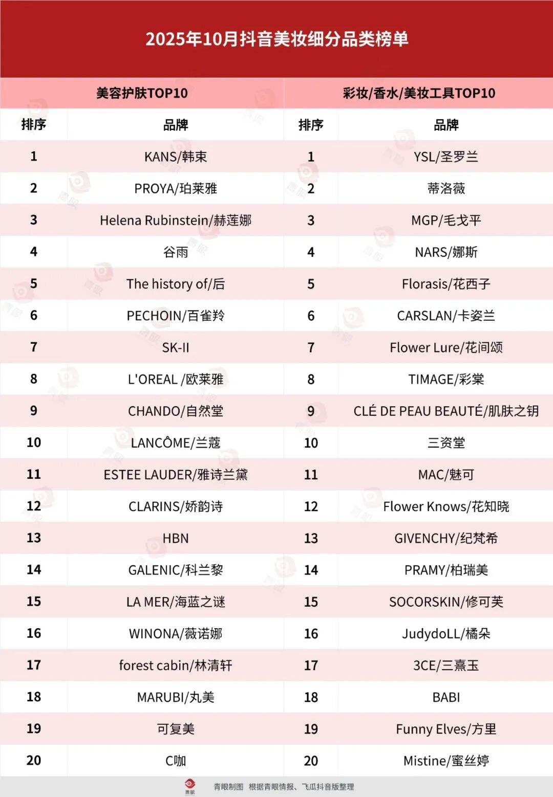 值得一提的是,10月抖音彩妆/香水/美妆工具榜单(下称:抖音彩妆榜)排名榜单重进一匹黑马。
