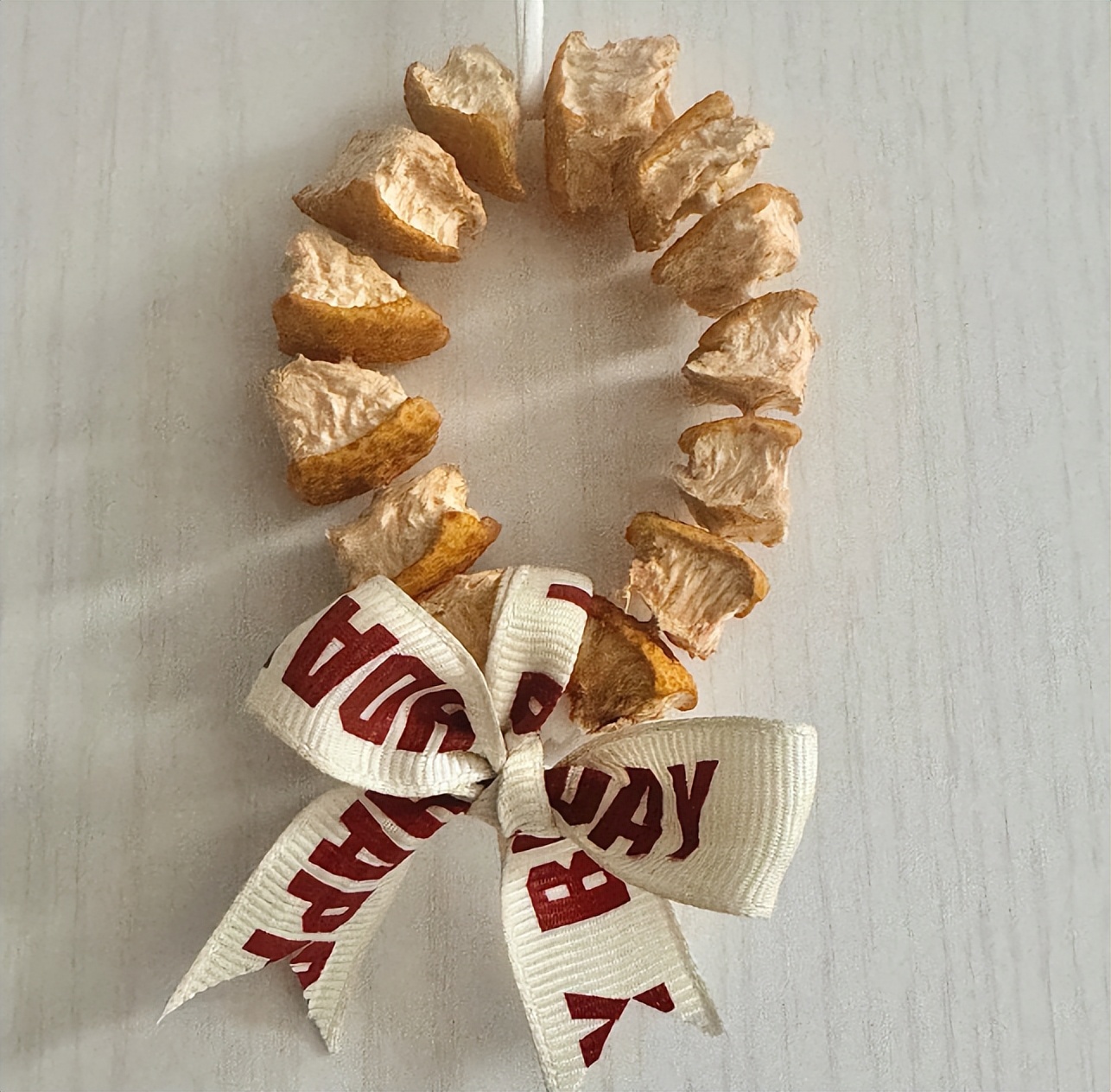 柚子皮在晾晒的过程中会变得比较软,大家可以捏成自己喜欢的形状,用绳子系一下。