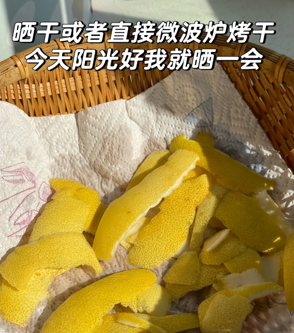 把柚子皮削下来之后,用清水洗一洗晒干,如果觉得晒干比较麻烦,可以直接用微波炉烤干。
