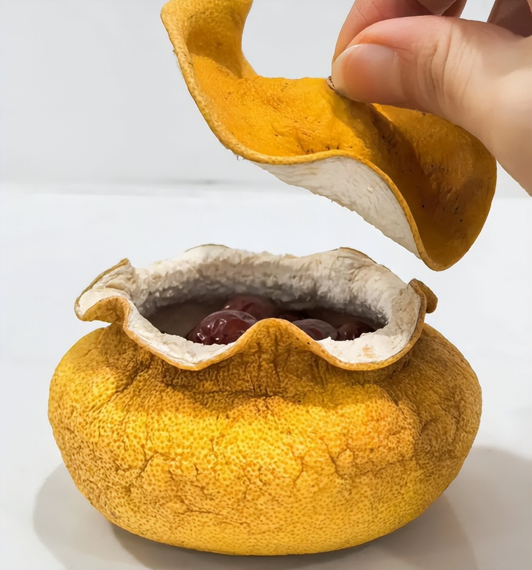 柚子皮彻底晒干之后就可以用来装东西了,放在家里很好看,跟艺术品一样。