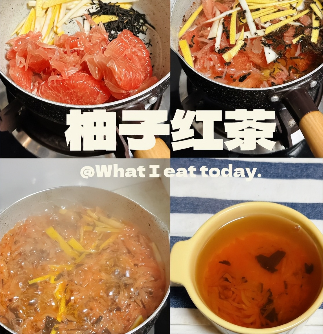 煮开之后,红茶和柚子的味道都特别浓郁,喝起来也是酸酸甜甜的,跟店里买的一样。
