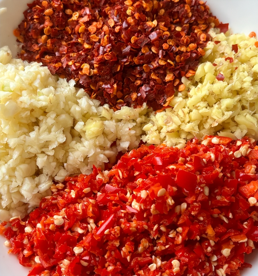 辣椒、小米辣、蒜末、姜末(不喜欢吃姜,可以不放)