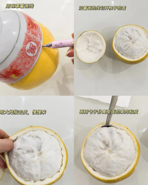 用完之后直接把柚子皮扔掉就可以了,干净卫生,还不浪费。