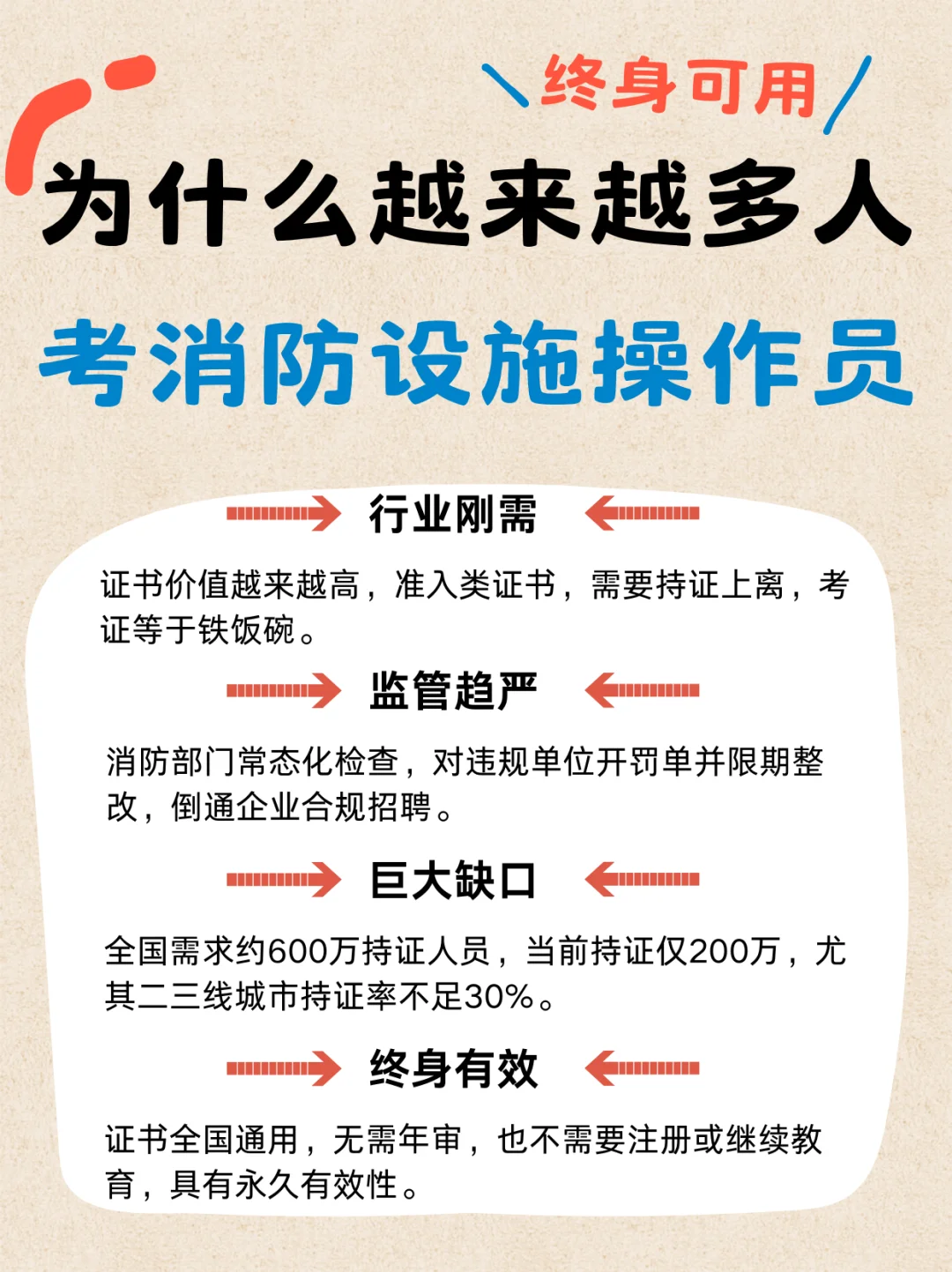 应届生别再死磕 “千军万马过独木桥” 的岗位了!有个 “低投入、稳回报” 的就业密码藏不住了 —— 考本消控证,轻松避开内卷,实现 “轻压力就业”。