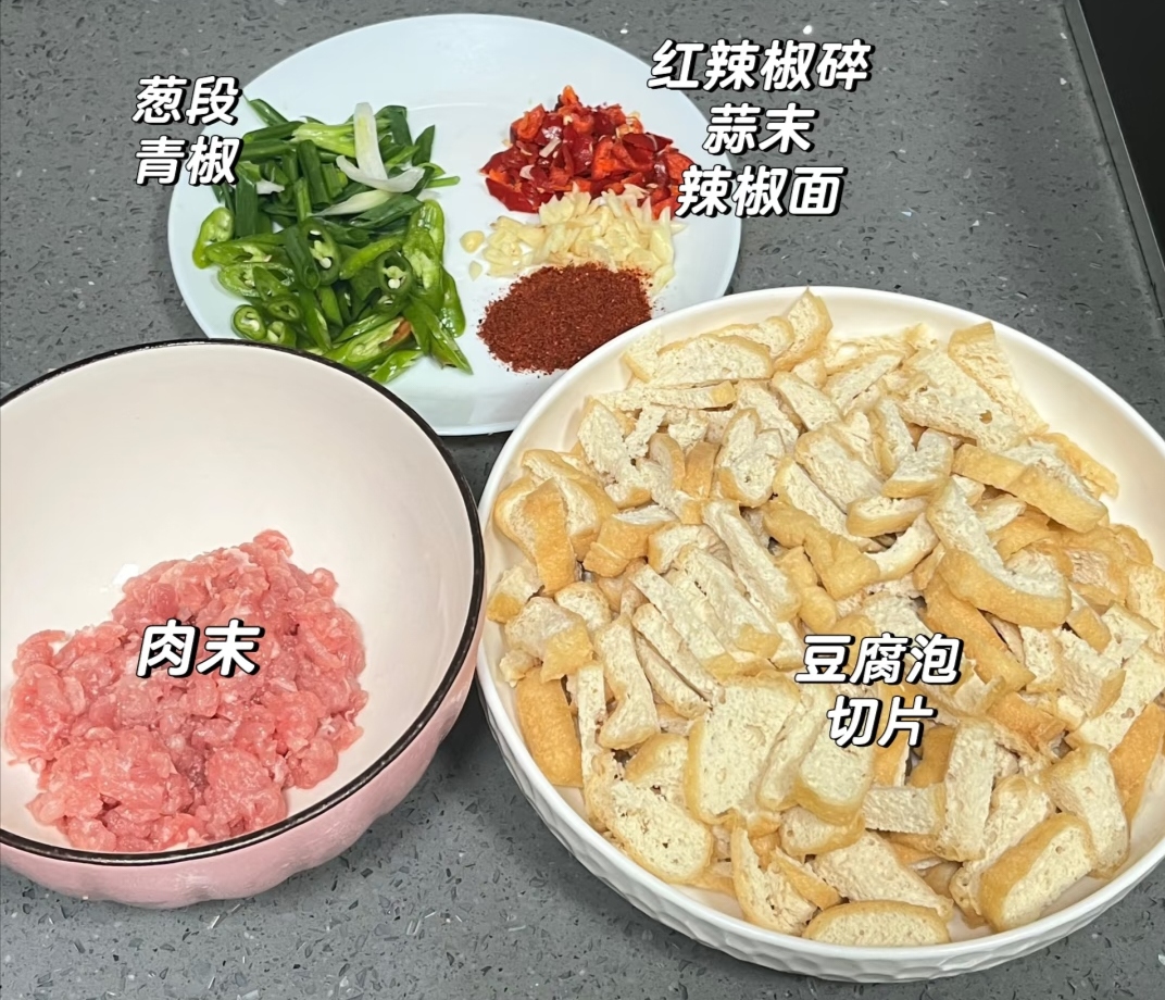 豆腐泡本身有油炸香气,不需要额外焯水;豆瓣、蚝油都有咸度,盐一定最后尝了再加;喜欢汤汁拌面,就多留 2 勺水,直接升级“香辣豆腐泡拌面”。