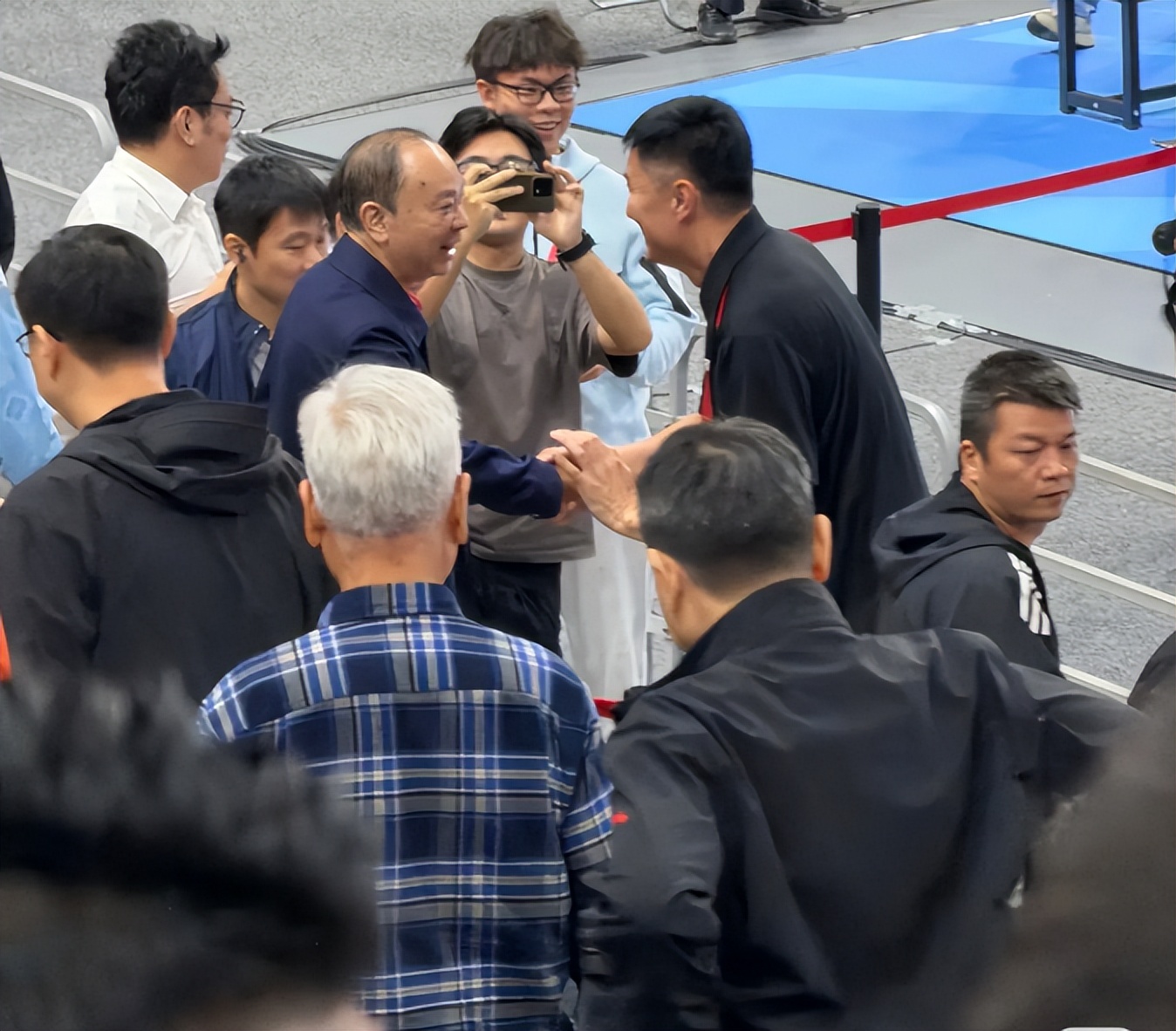 比赛结束后出现了有趣一幕,杜锋小步快跑,跨过围栏,走上看台和广东省委书记握手和寒暄,感谢他来支持广东男篮。半决赛这位书记主动找杜锋握手致意,杜锋也是受宠若惊。决赛结束后,杜锋知道这书记又来看球,这次是他主动小跑去找书记了,罕见跨过围栏,走上看台与书记握手,再次感谢领导的关怀。