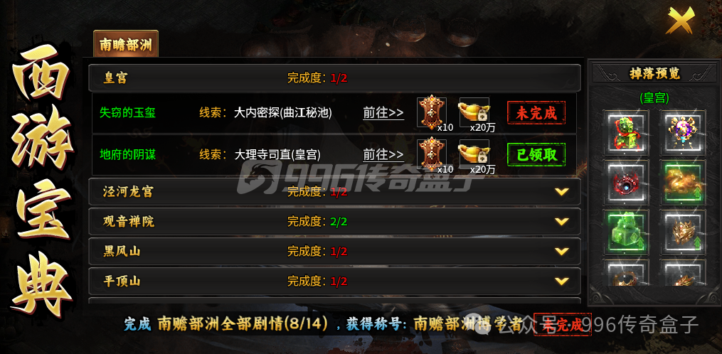 西游宝典中的剧情任务不是唯一的任务,安全区还会有专属剧情任务。每下一个大陆,建议先在安全区转一圈,看看都需要什么专属,每个专属都会标注出处,做任务的时候可以有针对性的刷一刷。比如二大陆的变身悟空,收集六个材料残片,可以解锁变身,有主动技能和被动技能,不光帅的离谱,也强的没边,谁能不心动!