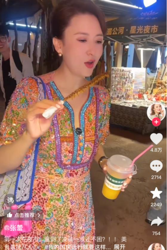 难得到了西双版纳,必须得逛一逛夜市,吃点好吃的,她也在视频下配文:“美食最抚凡人心。”