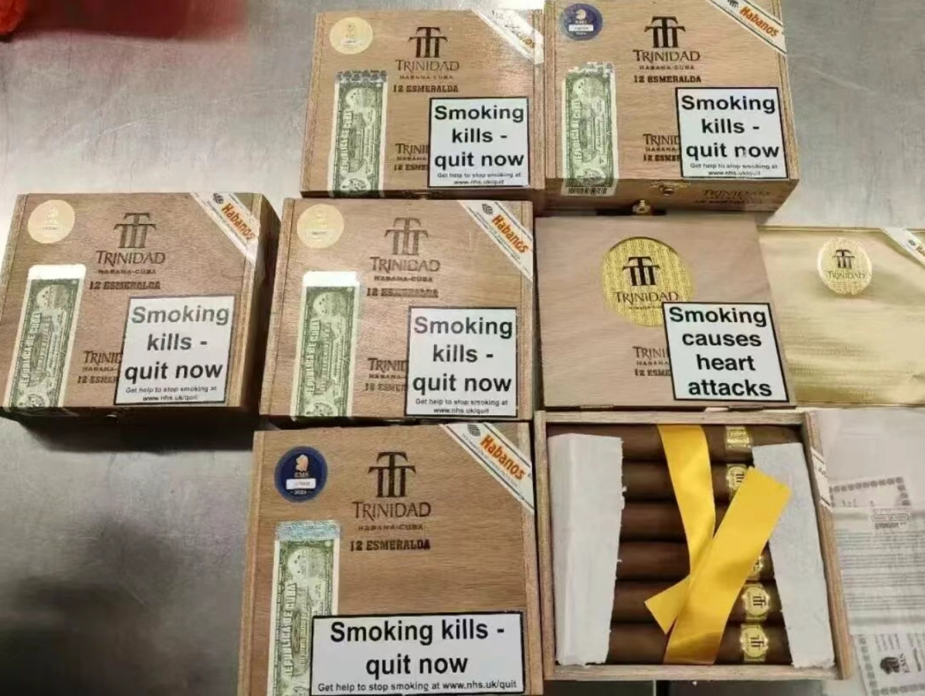 近日,皇岗海关在皇岗口岸客运车道查获一宗跨境客车司机走私122支雪茄进境案。