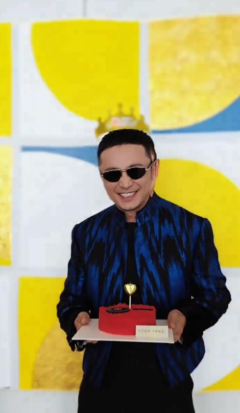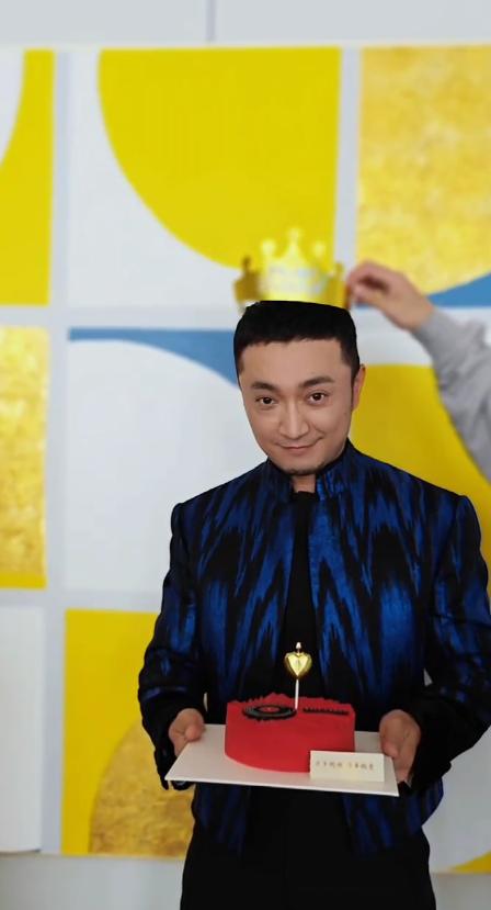但从他身后的背景来看,这次生日应该是在工作现场过的,而为他戴皇冠生日帽和墨镜的,也应该是工作人员。