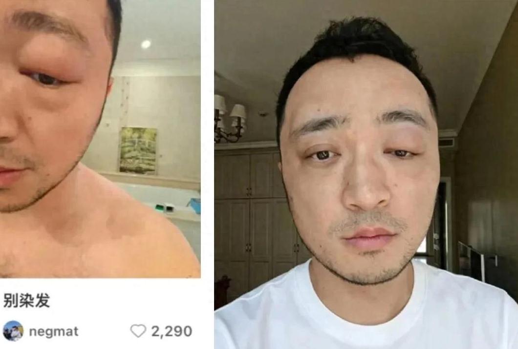 小尼近期发布的那组照片,是他去年染完头后的症状,也不知到底是不是染发剂的问题,反正他过敏了。