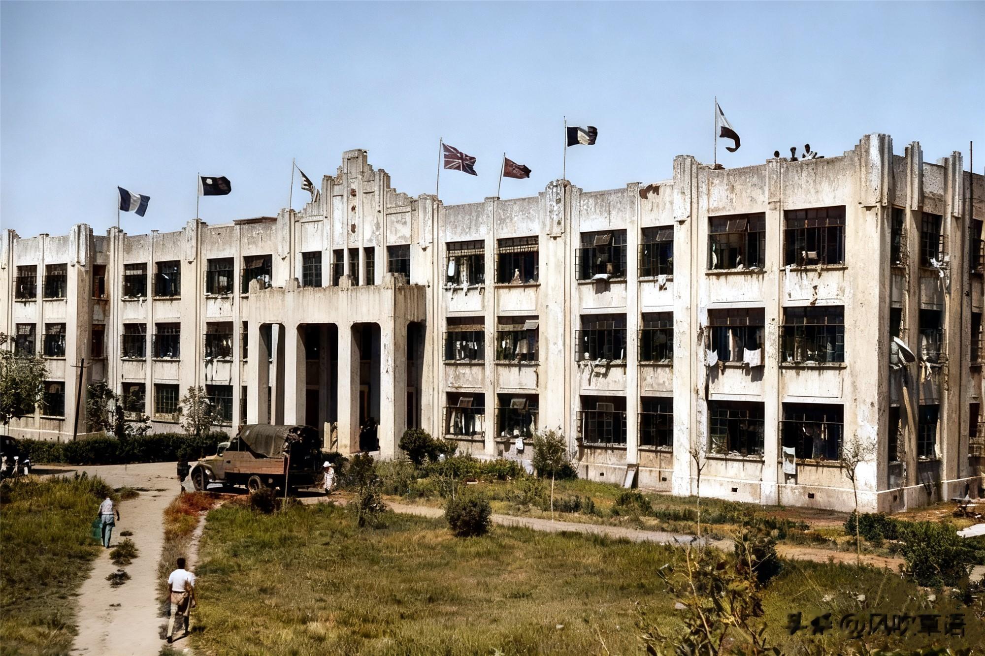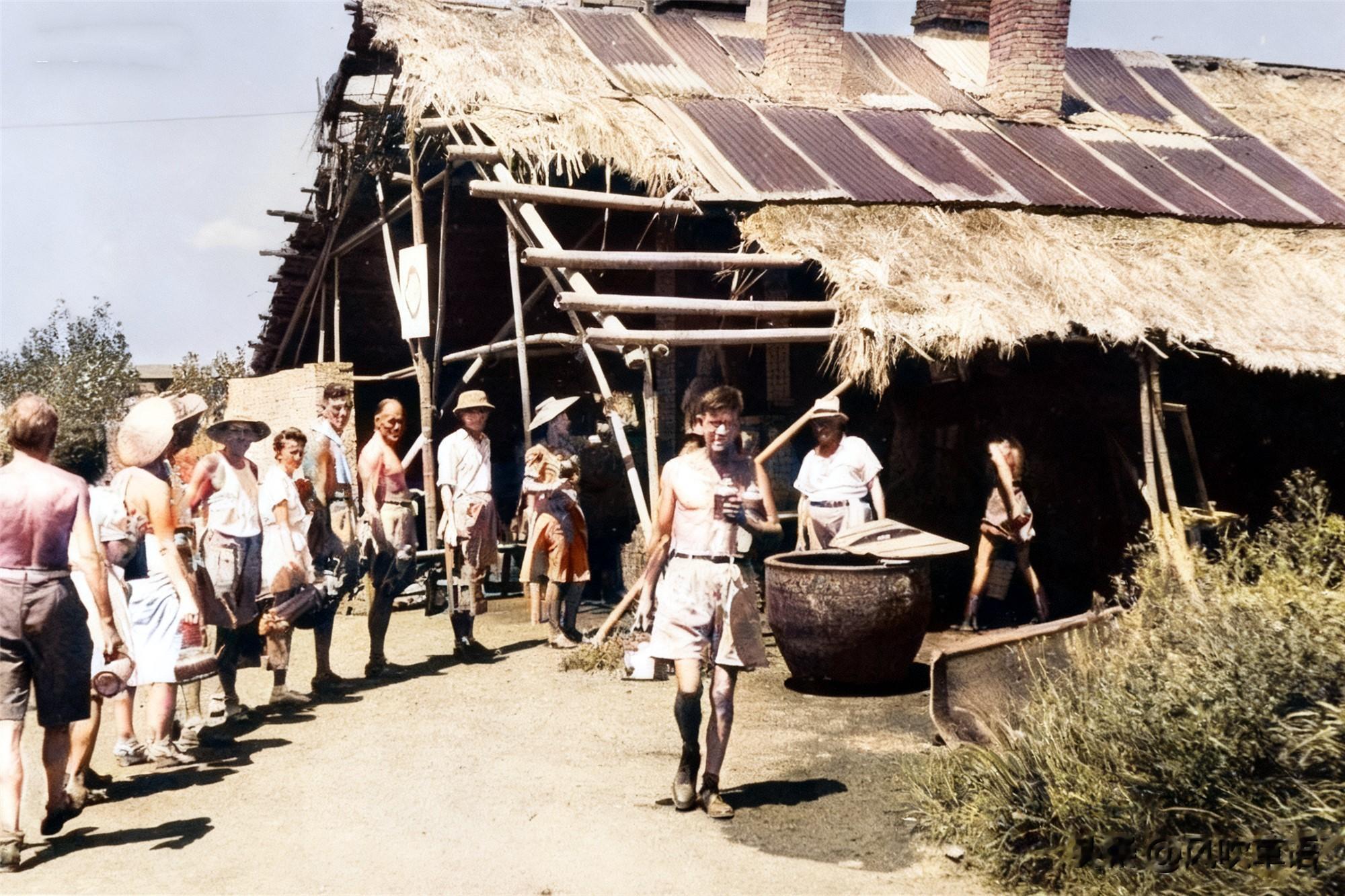 日本是一个变态的慕强国家,即便在和以美国为首的西方国家交战中,对集中营内的西方侨民依旧保持着相对的宽容,而不是像对中国人那样进行惨无人道的屠杀。图为集中营内男子宿舍和足球场。