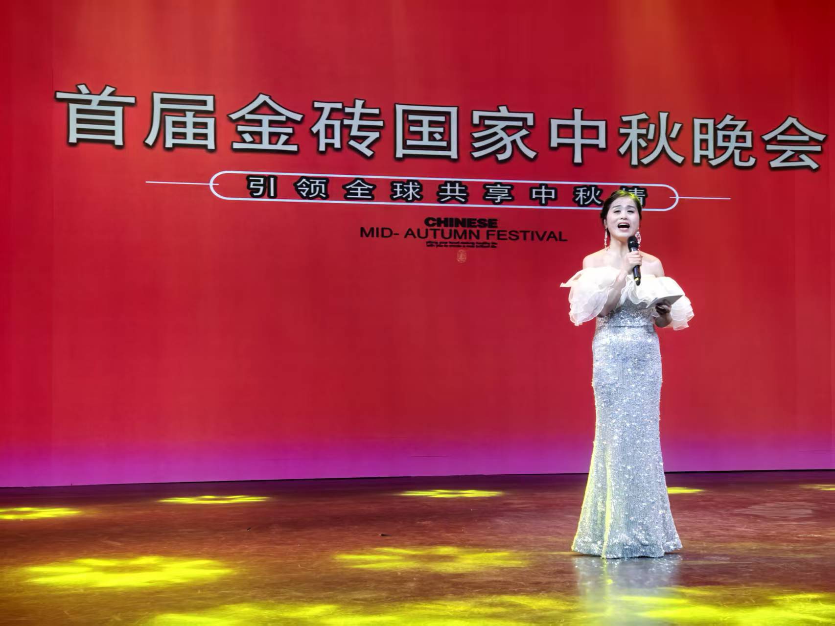 中秋晚会现场格外耀眼,星光熠熠,伴随着悠扬的轻音乐,全非洲华人女企业家工商联合总会常务副会长安馨也通过致辞,表达对金砖国家文化交融的期许与祝愿。