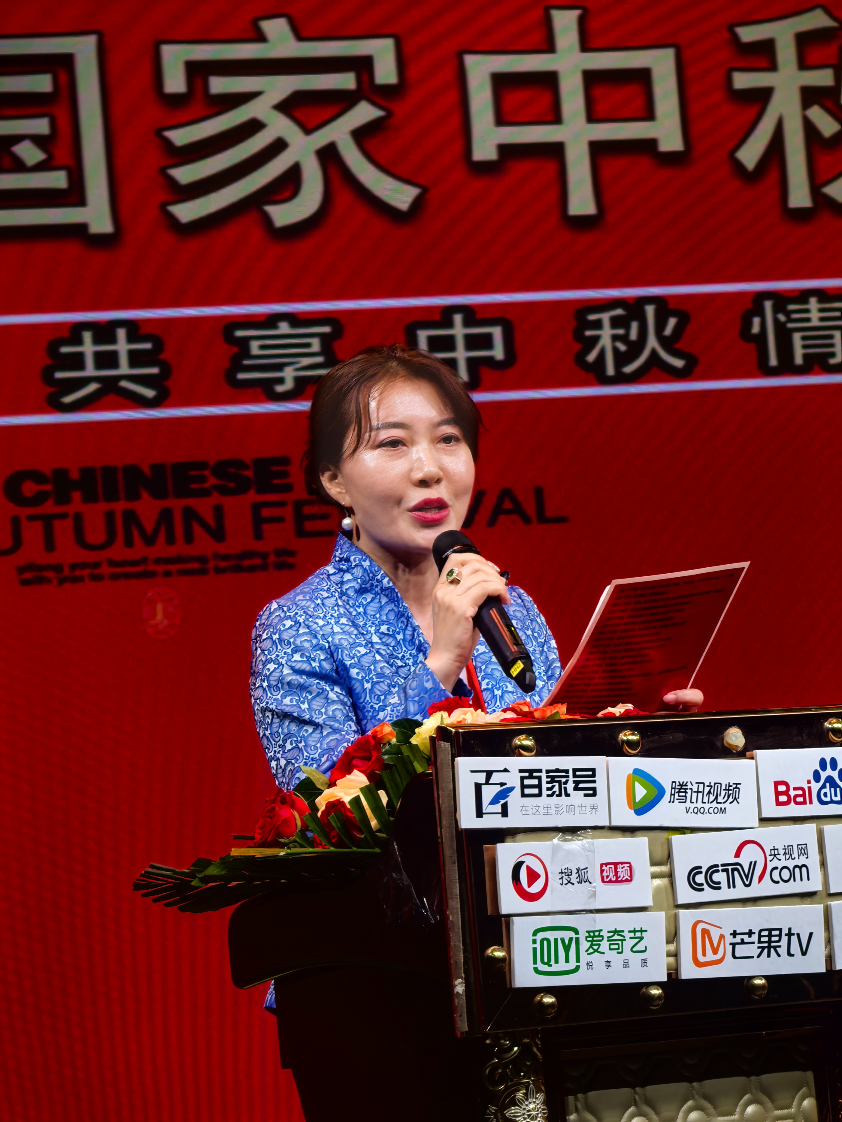 晚会时间进入倒计时,金文委国际事务部部长、晚会活动组委会主席宁文茂迈着矫健的步伐登上主席台,以庄重而有力的语调宣布中秋晚会开幕,拉开了文化盛宴的序幕。