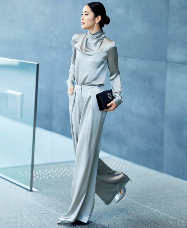 而在众多表现优异的灰色系穿搭中,银灰色更是脱颖而出,以无可匹敌的姿态斩获了第一名。银灰色以其独特的金属光泽和清冷却不失温度的质感,瞬间提升了整体造型的精致度和高级感。