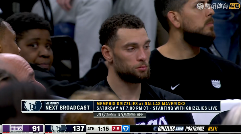 暂停回来,国王还是无法得分,灰熊可不会客气,一举将领先优势扩大到两位数。