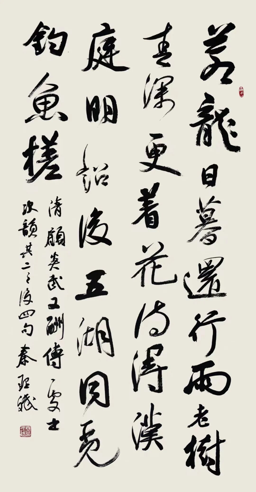 秦理斌,笔名辛泉,一级美术师,兰州大学书法研究所副所长、研究员,甘肃省政府文史研究馆馆员。兼任甘肃省政协书画研究院副院长,中国书协会员,曾任甘肃省书协原副主席、中国高教学会美育专业委员会副会长,担任第三届中国书法兰亭奖及多届“敦煌文艺奖”评委,获评“甘肃省中青年德艺双馨文艺工作者”。 1977年兰大毕业后留校深耕书法教学,六十余载笔耕不辍,深耕写意书法,以笔墨传情、以书载道,将践行写意书法作为毕生追求。形成平实简静、清新淡远的书风。作品40余次获国际国内奖项,20余次办个人书展,于2023年在北京举办中国美术馆学术邀请展“诗书成韵——秦理斌行书小品展,4幅作品被中国美术馆永久收藏。2024年6月应邀在西安亮宝楼举办秦缘墨韵.龙舞长安秦理斌书法作品展、11月在兰州甘肃省艺术馆举办黄河流韵.龙舞金城秦理斌书法作品展。多次赴海外开展书法讲学展览等文化交流活动。主编小学书法教材12册,出版《秦理斌书法作品集》《流动的线条一一中国书法鉴赏》等著作10余部。以“躬耕传道”之心,践行书法文化的传承与传播。