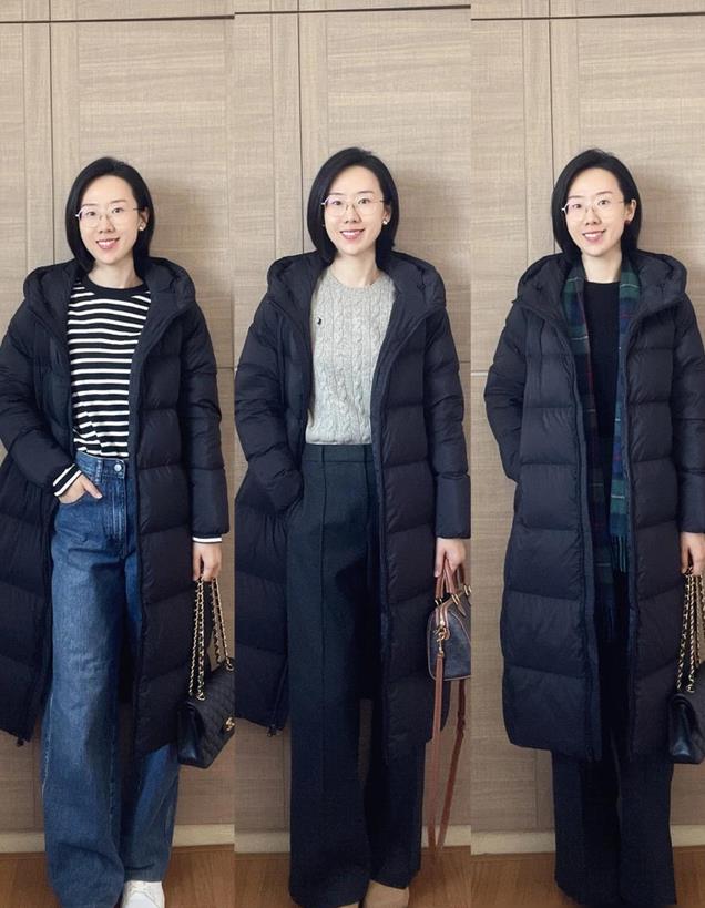 能百搭的黑色羽绒服。