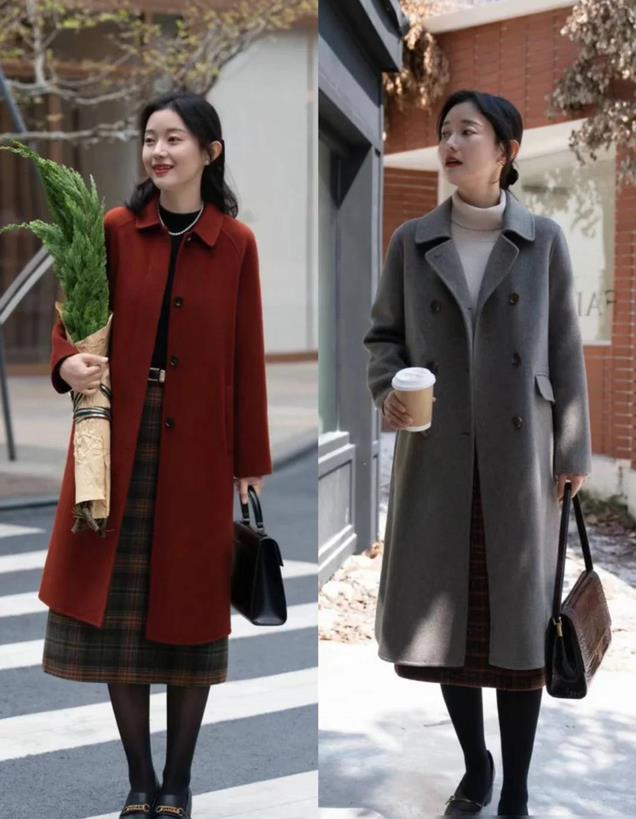如果对黑色大衣有所厌倦,又想尝试其他颜色,那么可以选择燕麦色或驼色,这两种颜色相比于黑色其冷酷感更能传达出高档感,同时灰色饱和度更低,整体更显优雅温和气息。