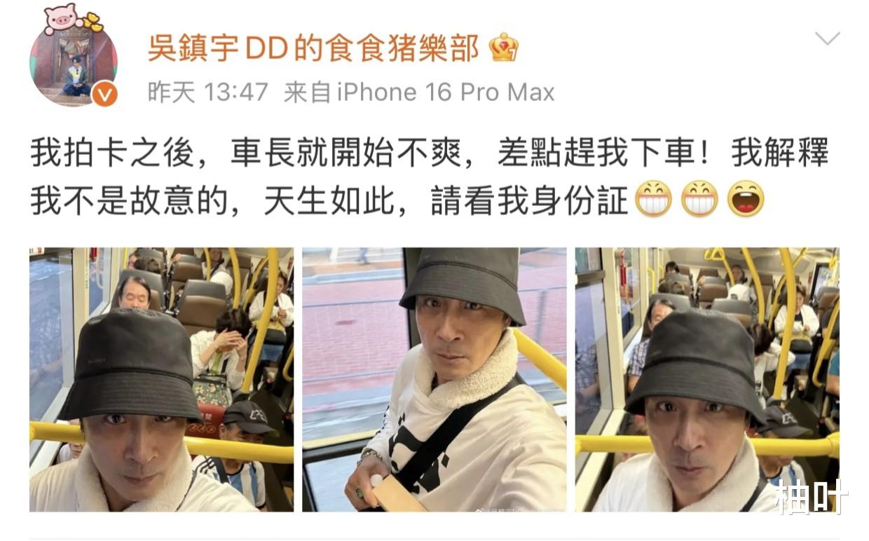 当天,吴镇宇头戴渔夫帽,一身潮流穿搭,脚踩一双潮鞋,潇洒地上了公交车,像往常一样“滴”了一下老年卡。结果司机大哥瞬间瞪大了双眼,眉头皱得能夹死蚊子,一脸怀疑地问:“小伙子,你这卡……是捡的吧?”空气瞬间凝固,整车人的目光“唰”地一下全聚焦在吴镇宇身上,那场面,尴尬得能用脚趾抠出三室一厅。