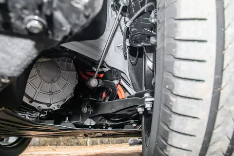 纯电版有后驱和四驱可选,后驱单电机有 160 千瓦和 200 千瓦两种功率,双电机四驱版前后电机都是 200 千瓦,总功率 400 千瓦,零百加速能进 3 秒,不到 16 万就能有这性能,确实让人惊喜。试驾四驱版的时候,提速推背感很强,超车毫不费力,不过日常通勤用后驱版就够了,动力完全够用。底盘是前麦弗逊式独立悬架加后五连杆式独立悬架,据说有专业赛事团队调校过,开起来感觉挺稳的,过减速带时颠簸过滤得不错,转弯时车身倾斜也不明显,兼顾了舒适性和驾驶乐趣。