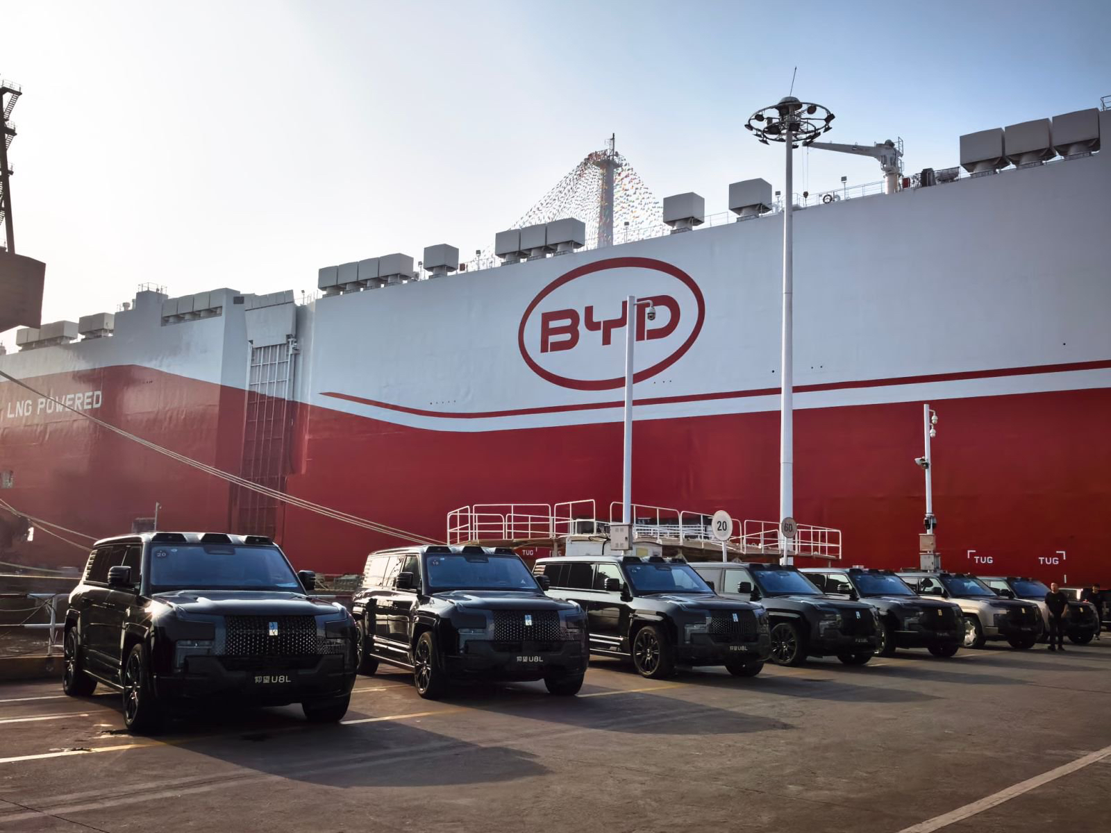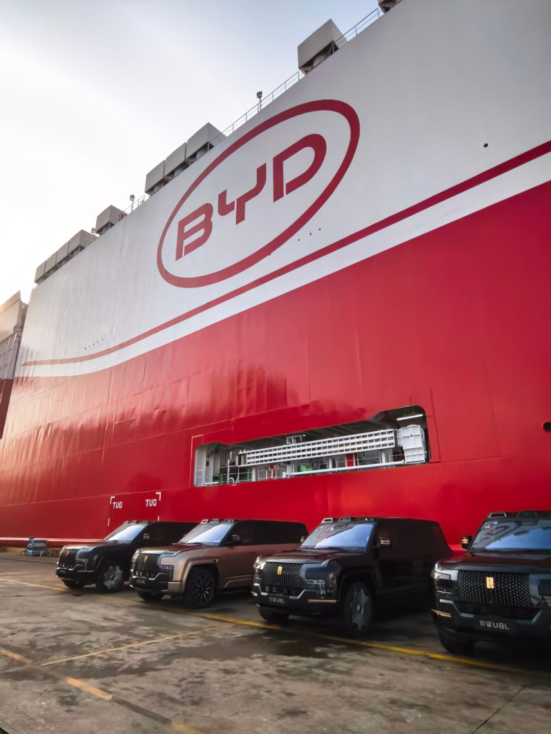 交付仪式当天,比亚迪第八艘汽车运输船“济南号”正式启航。“济南号”体量更大,拥有9200个标准装载车位,巨大装载能力将大幅提升比亚迪汽车运输效率,为全球市场布局提供有力支撑。