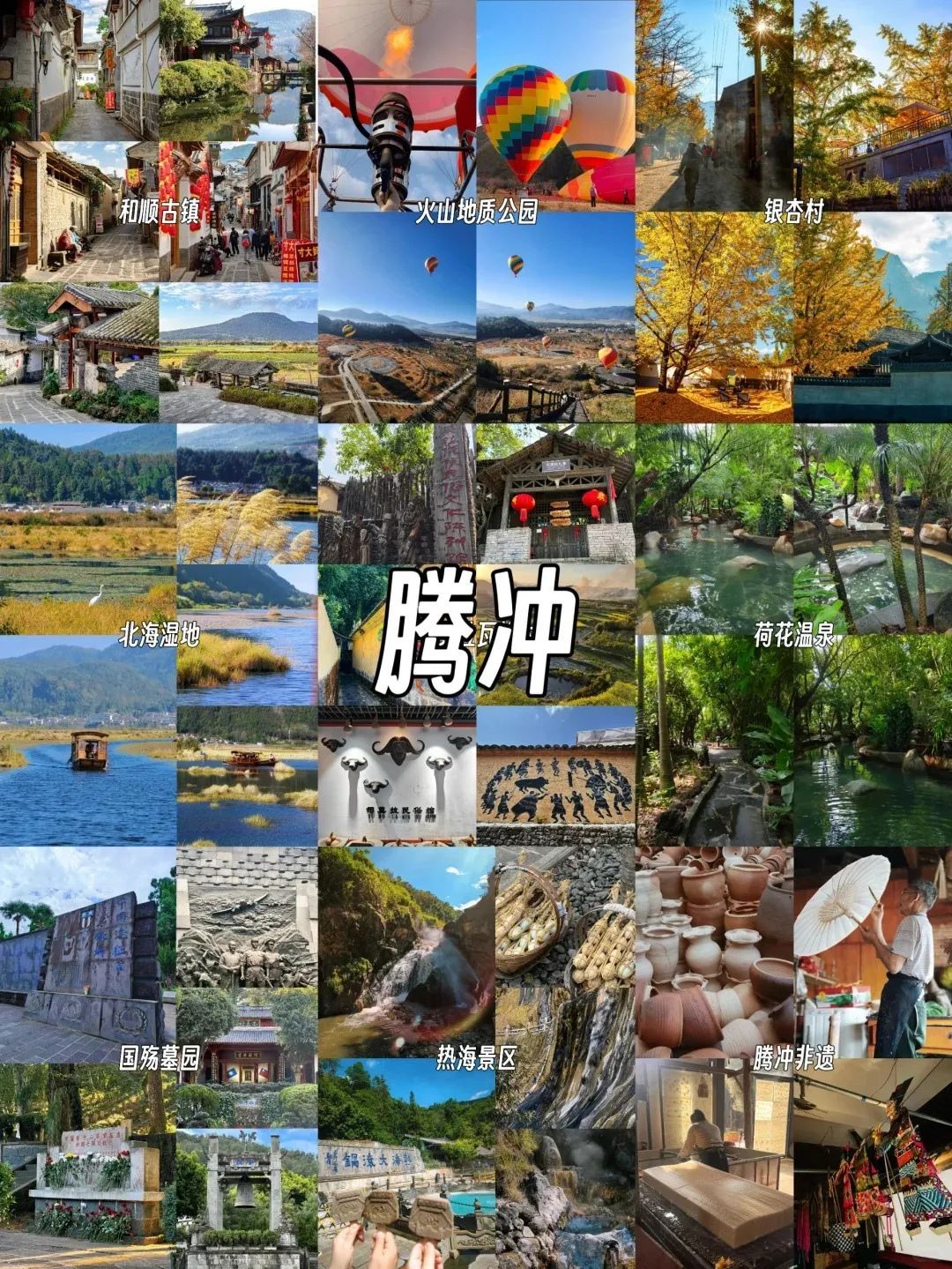 自然景观独特:腾冲还有火山地热公园、北海湿地等自然景观,能欣赏到壮观的火山地貌和宁静的湿地风光.