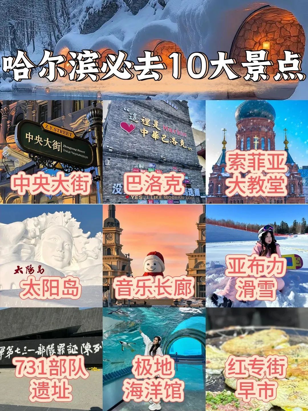 冰雪艺术之都:冬季的哈尔滨是一个梦幻的冰雪王国,有著名的冰雪大世界,那里有精美的冰雕、雪雕作品和各种冰雪娱乐项目,如滑雪、滑冰、雪地摩托等,让你充分感受冰雪文化的魅力.