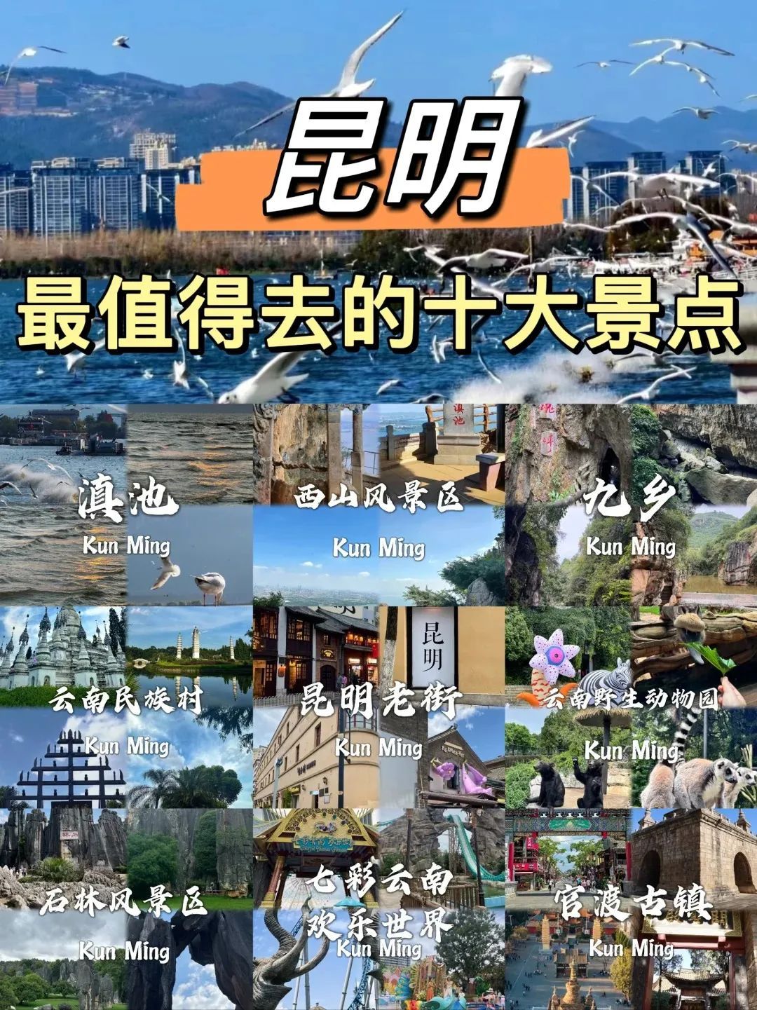 自然景观丰富:滇池是昆明的标志性景点之一,冬季有成群的红嘴鸥在此过冬,形成一道独特的风景线。此外,还有石林、九乡风景区等自然奇观可供游览.