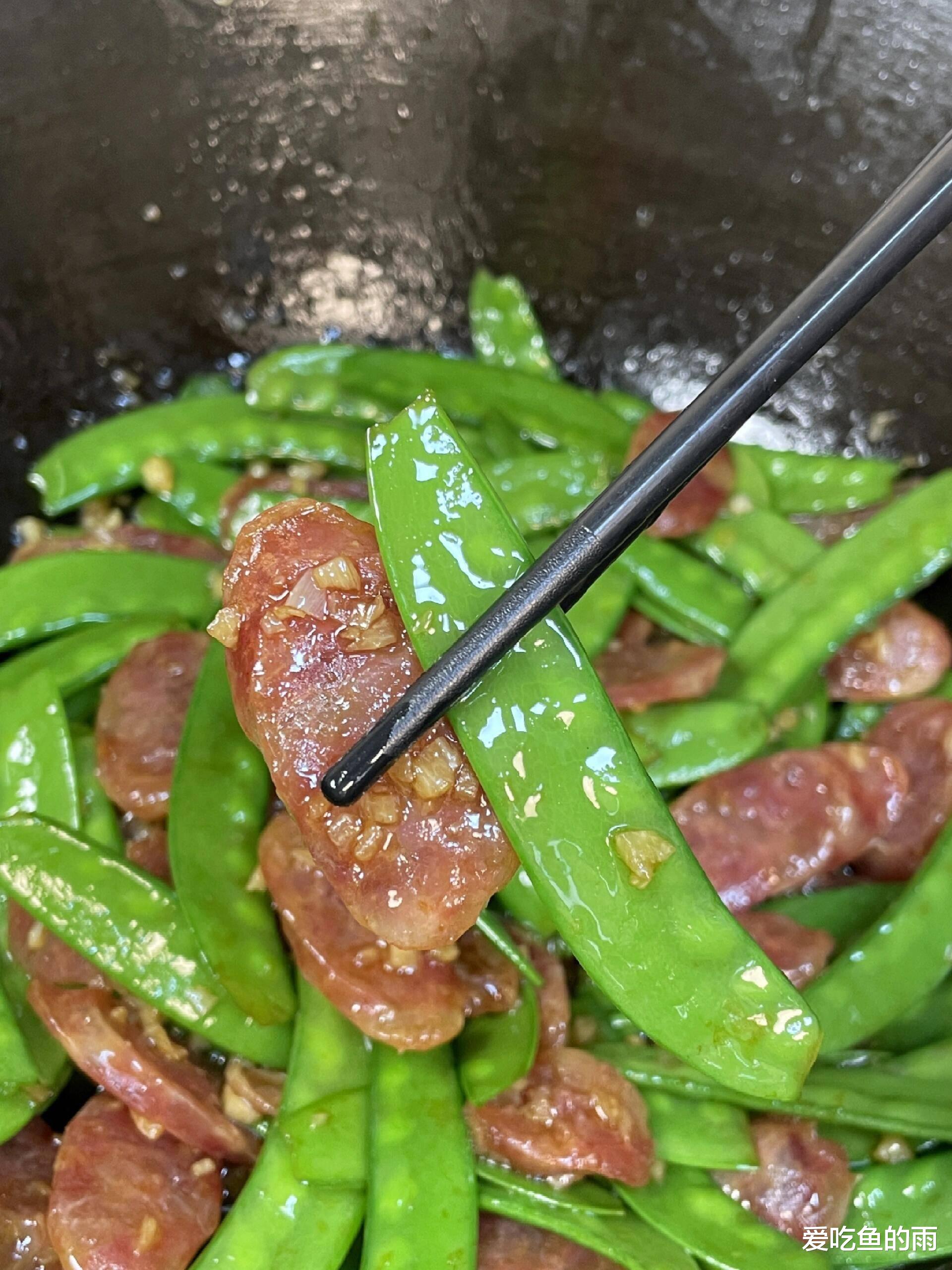 记得第一次学做这道菜,母亲总念叨:“腊肠要先煎出油,荷兰豆焯水时间不能长,否则软塌就失了灵魂。”如今我掌勺时,总会想起她站在灶台前示范的身影。原来,一道菜里藏着的不仅是技艺,更是代代相传的温情密码。荷兰豆原产自荷兰,却在中国厨房找到了归宿;腊肠承载着南方人对风味的坚守,与北方蔬菜的清新相遇,恰似文化交融的缩影。这道菜没有山珍海味的矜贵,却以最朴素的姿态,诠释着中华饮食的哲学——食材本味与火候的拿捏,是千百年来百姓对“家常”二字的极致追求。